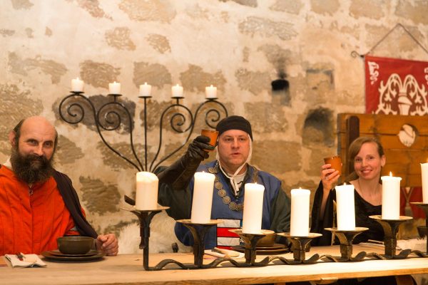 An der Tafel sollt Ihr auf der mächtigen Burg von Kulmbach Platz nehmen und Euch von edlem Gesang, heldenhaften Erzählungen und einer stattlichen Speisenfolge verwöhnen lassen. Lasst Euch bei einem prächtigen Ritteressen von feinster Speis‘ und Trank‘ verführen und erlebt ein Stück mittelalterlicher Geschichte.